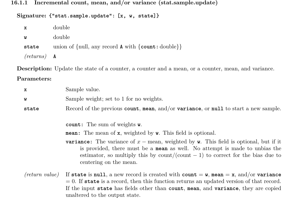 The specification of “stat.sample.update” is: